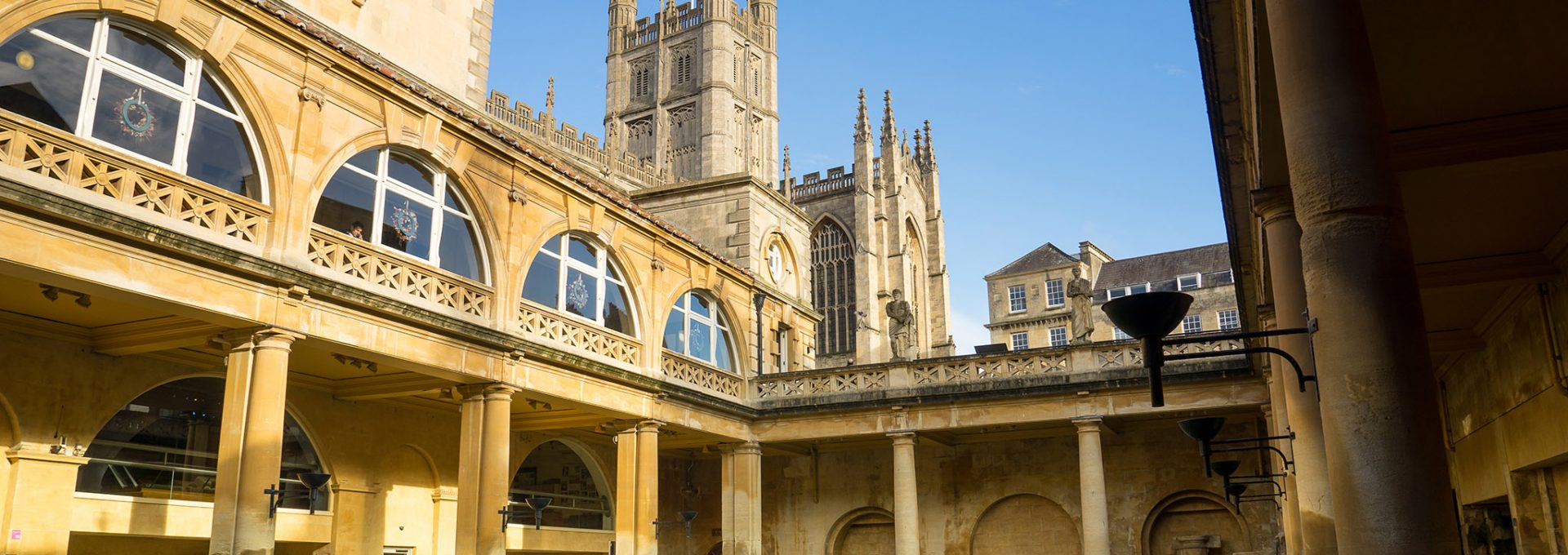 The Roman Baths are located in the centre of the city, next to Bath Abbey. After visiting these iconic buildings, you could Walk to the view and look back on them from the meadows above the city.